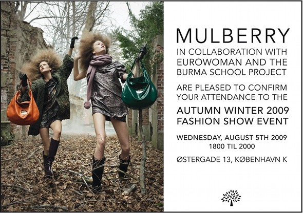 I samarbejde med Eurowoman har Mulberry udlovet 100 billetter til deres modeshow, og sørme om der ikke er dumpet en invitation ind i min mailbox.