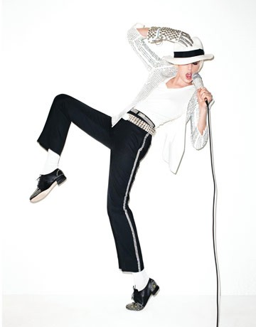 I det seneste nummer af Harpers Bazaar har de en Michael Jackson tribute med Agyness Deyn i rollen som Michael Jackson.