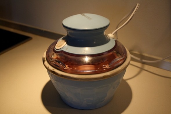 Det mest ærgerlige ved de der almindelige husholdnings-ismaskiner er at beholderen skal i fryseren først i mange timer, derfor får jeg så sjældent lavet is.