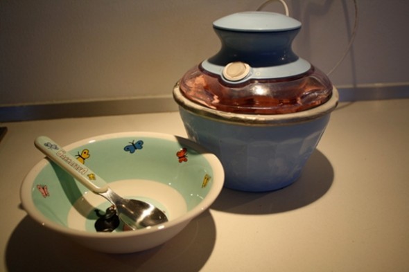 Jeg har som sagt kun lavet sunde yoghurtis med maskinen – men jeg synes, jeg har hørt lidt hviskeri fra køkkenet om aftenen, når jeg er lagt i seng, hvor min Mor og Far tilsyneladende har brugt MIN ismaskine til at lave flødeis med knuste Oreos eller Tobleronestykker i – og så vidt jeg kunne bedømme, så var de også yderst tilfredse med resultatet – tsk tsk tsk…
