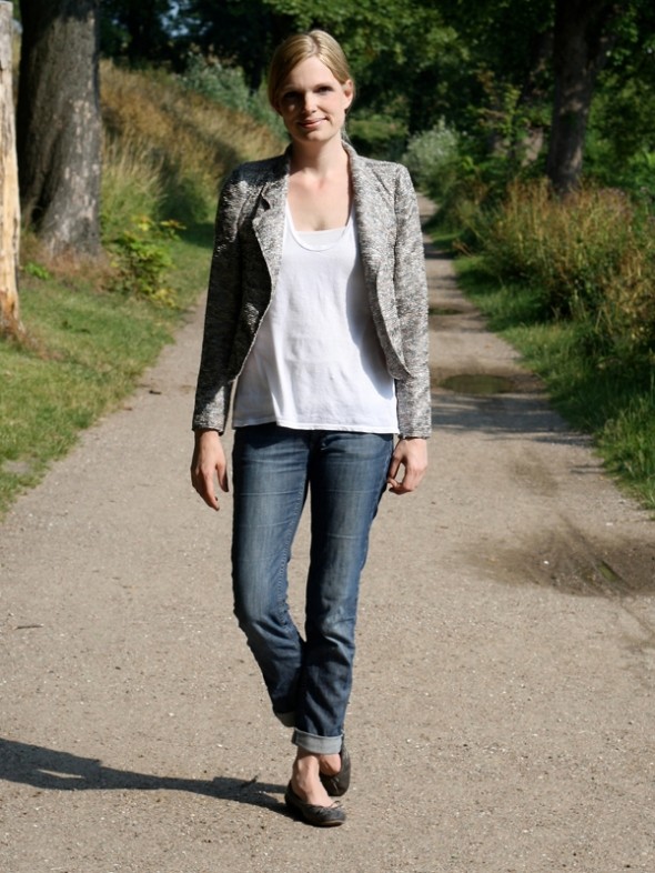 Blazer: Zara -.- Jeans: Acne -.- T-shirt: T by Alexander Wang -.- Ballerinaer: Zara