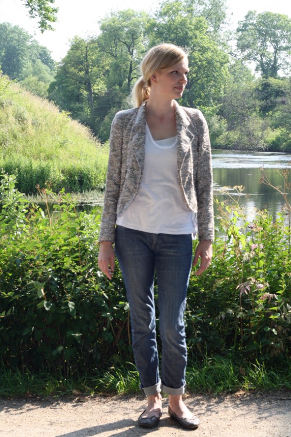 Jeg har allerede brugt den flittigt – både til jeans og en afslappet tee, som her på billederne – men også til de lidt pænere anledninger, hvor Chanel-viben rigtig kommer til sin ret.