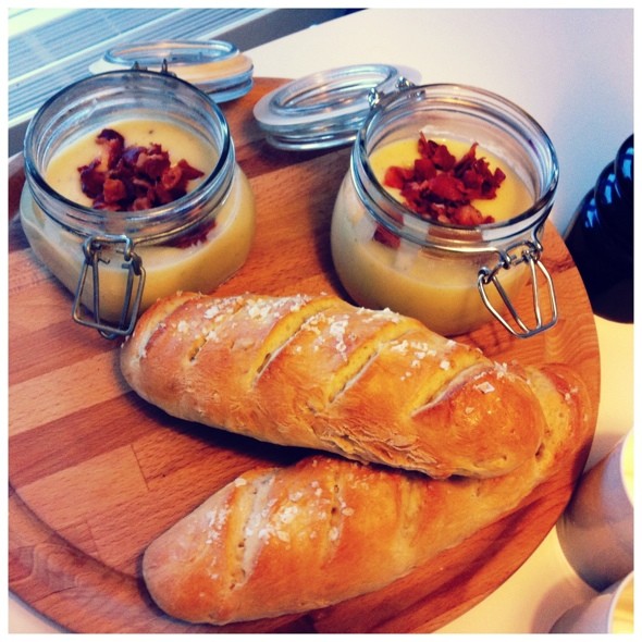 og så vil jeg gerne bytte mand! jep. så er det sagt. først rabarber trifli og nu kartoffelporre suppe MED sprød bacon på toppen og lækkert brød med groft salt…Uhhhmm!!!!!!!!!!!!!