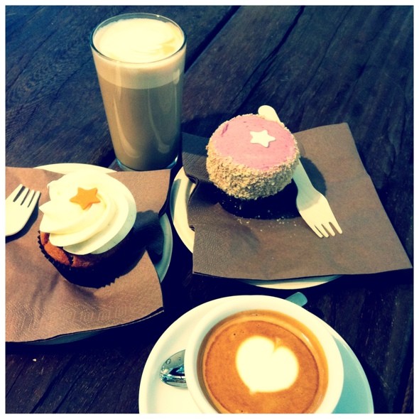 Verdens bedste kaffe fra Coffee Collective og lækre cupcakes fra Agnes (det var før Cupcake-skandalen, men jeg er nu ikke sikker på, hvad der er stærkest – min retfærdighedssans eller min lyst til lækre kager 😉 ). Begge dele indtaget i Københavns fine nye Torvehaller i godt selskab med en kær veninde og min søde Fidus.
