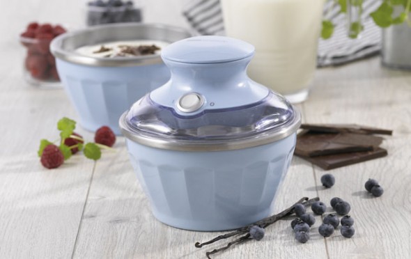 Det er naturligvis den lille, fine lyseblå ismaskine fra OBH, jeg taler om.