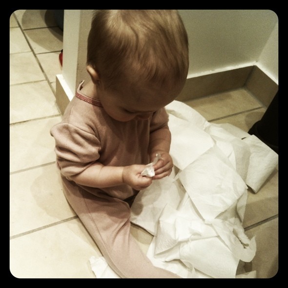 Og sidst men ikke mindst: Lykken er at holde fest med en hel rulle toiletpapir, når man er 10 måneder gammel.