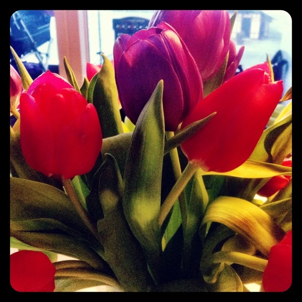 Smukke blomster fra min søde kæreste, som stod og pyntede noget så fint, da jeg kom hjem fra min første dag efter endt barsel.