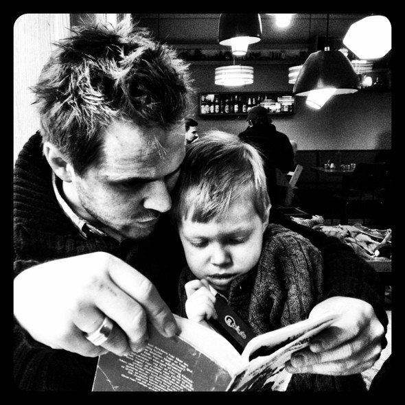 Caféhygge med familien i weekenden, hvor der puttes tæt og læses højt af gamle Jumbobøger.