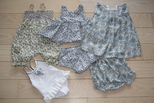 Buksedragt fra Mini a Ture, tunika og shorts fra Wheat, kjole og blebukser fra Poppy Rose samt badedragt fra Ralph Lauren.