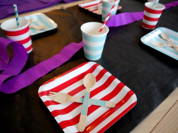 Jeg faldt pladask for det smukke, smukke bestik i træ med smukke mønstre, der i farverne passede perfekt til både tallerkener, kopper og sugerør. Samtidigt var det meget mere solidt end almindeligt plasticbestik – og uden tvivl MEGET flottere at se på 😉