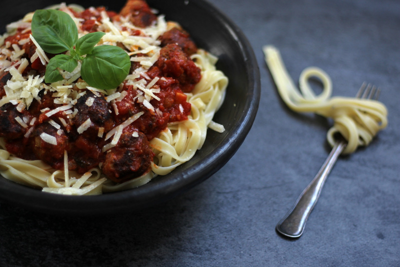 opskrift på pasta med kødbolle og tomatsovs