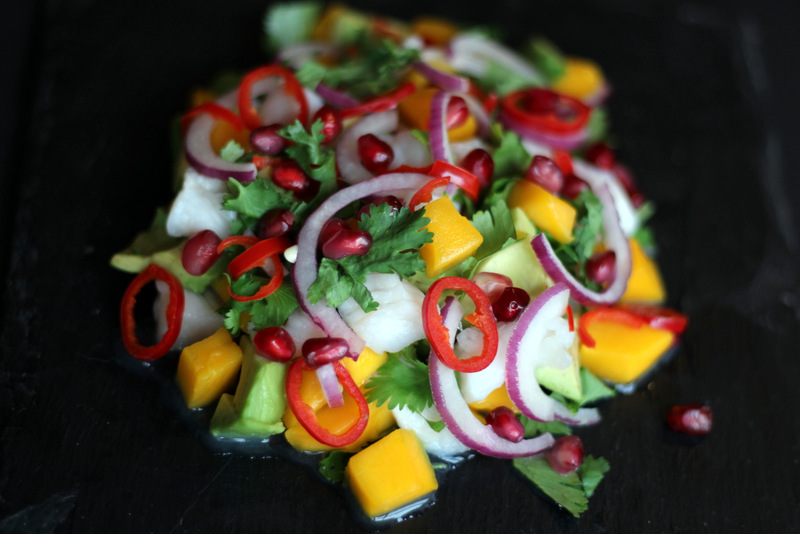 opskrift ceviche med torsk avocado mango granatæble og koriander